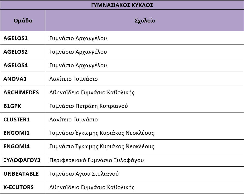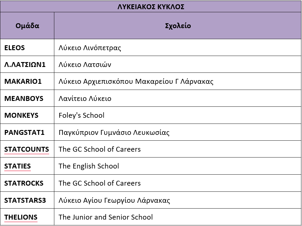 Οι συνδιοργανωτές του διαγωνισμού (Στατιστική Υπηρεσία, Υπουργείο Παιδείας, Αθλητισμού και Νεολαίας, Πανεπιστήμιο Κύπρου και Κυπριακή Στατιστική Εταιρεία) επιθυμούν να εκφράσουν τις ευχαριστίες τους προς όλες τις ομάδες για τη συμμετοχή τους, καθώς και για την προσπάθεια που έχουν καταβάλει.